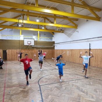 Ve zdravém těle zdravý duch. Na hodiny tělesné výchovy chodíme do nedaleké školy, makáme na sobě, zvládne rozcvičky i míčové…