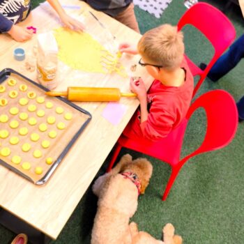 Kdo říká,  že pečení je pro holky, nemá  pravdu.  Kluci sami upekli pro všechny jablečnou buchtu, která z plechu zmizela…