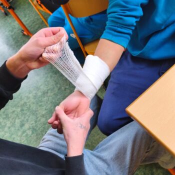 Ve rámci prevence jsme zorganizovali přednášku na téma první pomoc ve vlastní režii, neboť naše paní učitelka je členkou MS…