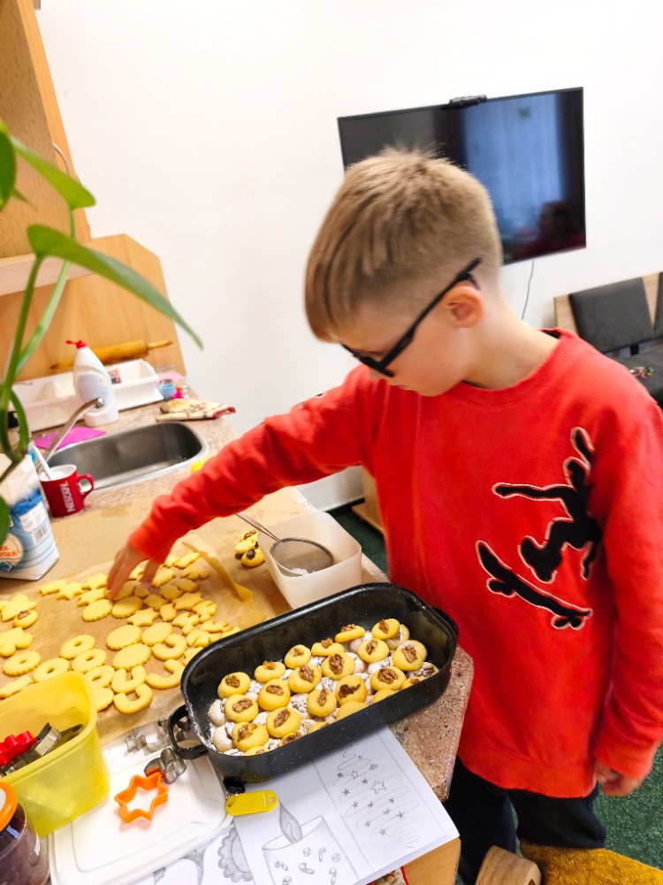 K adventu patří neodmyslitelně pečení vánočního cukroví a výroba vánoční výzdoby.  V rámci pracovních činností děti pekly linecké slepované cukroví a linecké koláčky a rohlíčky. Nejlepší částí, a to se všichni shodli, byla ochutnávka kvality.
